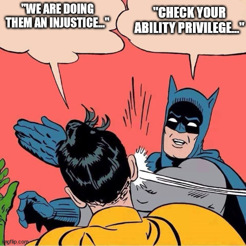 Okay, so, let me get real authentic for a moment. You can ask one of my besties, Vicki Van Hise, a triumphant fierce advocate for those who are differently-abled, that I’ve struggled with my own biases around disability in the past. I was a younger, burgeoning social justice-minded professional starting my journey as a professor, and I was pretty pissed off about what I thought were academic accommodations that were actually hurting students more than helping. I argued that we weren’t preparing students for the real world if we kept “giving them extra time to do tasks.” “That’s just not how it works, Vicki. Bosses don’t give a shit about you–do the work, meet the quota, no excuses,” I said.